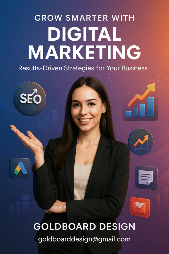 At Goldboard Design, we believe that just having a website isn’t enough; it needs to work for you. We focus on making sure your business gets seen, whether we’re building an e-commerce site or managing your digital marketing. Our goal is to get you in front of the right customers and turn that visibility into real sales.